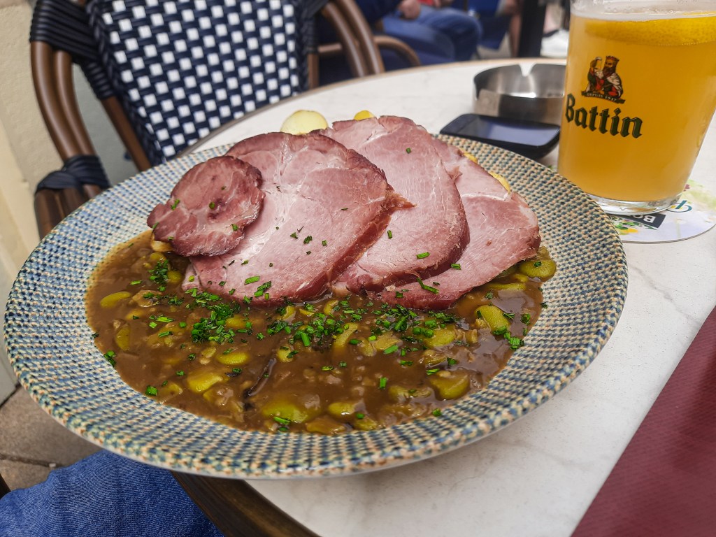 A przygodę w tej stolicy zakończyliśmy ponownie pod siedzibą Wielkiego Księcia Luksemburga. W znajdującej się niedaleko restauracji spróbowaliśmy lokalnych potraw m.in. Bouneschlupp, zupy z zielonej fasoli z ziemniakami, boczkiem i cebulą czy Judd mat Gaardebounen, pikantnego dania z wędzonej karkówki i bobu.