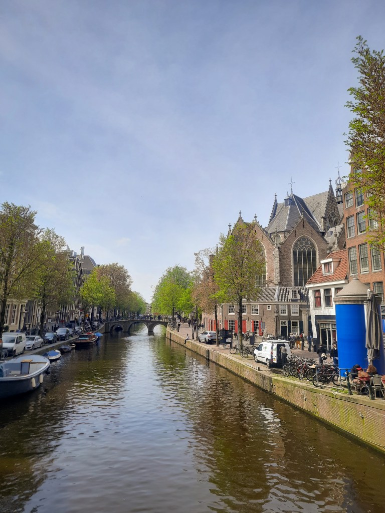 Dopiero rano mieliśmy czas i siły by trochę więcej pozwiedzać. Przeszliśmy się przez dystrykt żydowski, idąc obok Synagogi Portugalskiej oraz przez ciągnący się wzdłuż kanału Single Bloemenmarkt – targ kwiatowy, zobaczyliśmy beginaż – świecki klasztor, znajdujące się przy placu Dam Pałac królewski oraz Nowy Kościół, a także Stary Kościół, a także szukaliśmy napisu „Amsterdam” i zrobiliśmy zapasy holenderskiego sera.