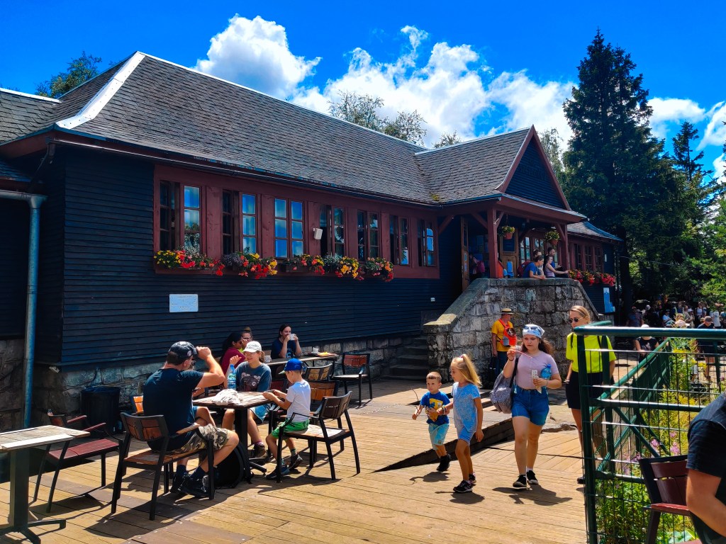 - By wejść na szczyt jedyną dostępną drogą, czyli skalnym labiryntem zwanym Tronem Liczyrzepy lub Fotelem Pradziada, w sezonie, należy zakupić bilet.