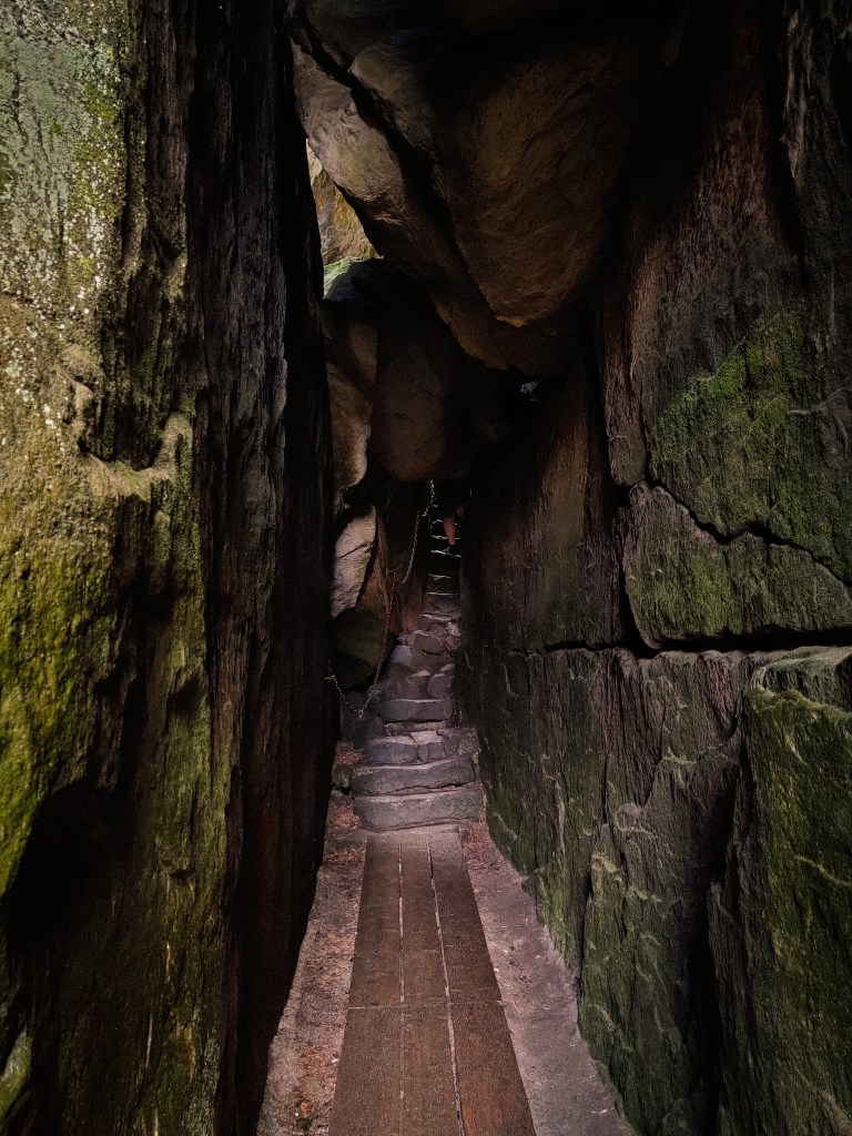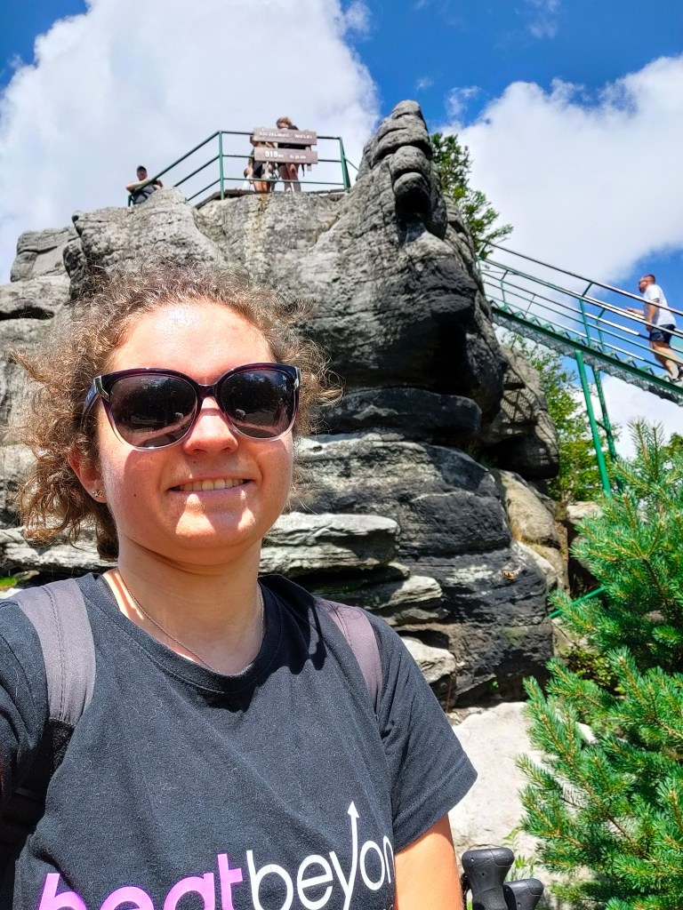 - Jeśli zbieracie pieczątki to przybijcie je w Schronisku, zanim wejdziecie wyżej. Szlak na Szczeliniec Wielki, za kasami, jest jednokierunkowy i biegnie w dół do Karłowa. [Inaczej tak jak nas, będzie Was czekać powrotna droga na górę :D]