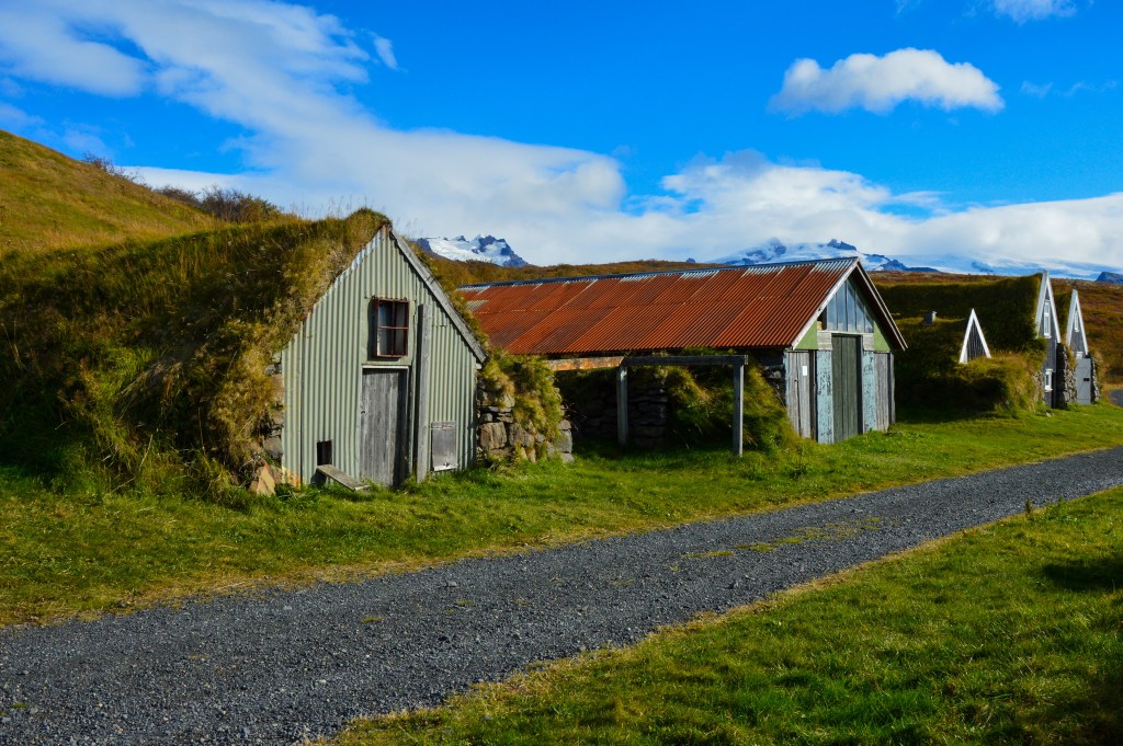 Po drodze do spektakularnego wodospadu Svartifoss, zlokalizowanego pomiędzy bazaltowymi słupami, minęliśmy dwie inne kaskady: Hundafoss i Magnúsarfoss. Otoczone pięknymi jesiennymi barwami także robią ogromne wrażenie. Podobnie jak widoki wokół. Bardzo dobra widoczność pozwalała nam podziwiać rozpościerające się na kilka kilometrów pustkowia oraz ocean, a także znajdujące się dużo bliżej języki lodowca, pod jeden z nich kilka chwil później dotarliśmy. Ten surowy krajobraz mocno kontrastował z otaczającą nas kolorową roślinnością. Wystarczy kilometr, by znaleźć się w kompletnie innej „scenerii”. Pętlę, którą spacerujemy, można skrócić, pomijając zwiedzanie dawnej farmy w Sel. Moim zdaniem, nie warto tego robić. Dodatkowe pół godziny pozwoli odwiedzić niewielkie, przytulne, islandzkie gospodarstwo z początku XX w. Całą, liczącą około 7 km, trasą pokonaliśmy w niecałe 3 godziny spokojnego marszu i podziwiania widoków.