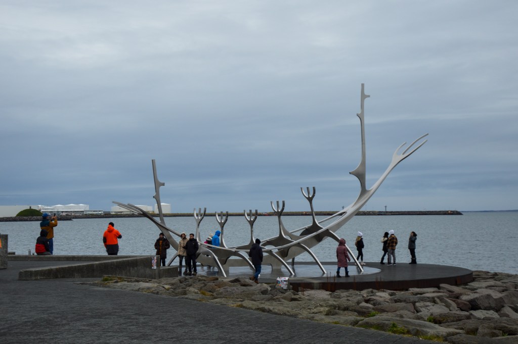 Zostało nam niewiele czasu do odlotu, a lotnisko Keflavík znajduje się około godzinę drogi od stolicy. Mimo to udało nam się odbyć szybki spacer po ulicach Reykjaviku, wejść do słynnej świątyni Hallgrímskirkja, ikony miasta, dojść na wybrzeże i zobaczyć rzeźbę Sun Voyager, a nawet zjeść hot doga z najstarszego stoiska w mieście – Bæjarins Beztu Pylsur.