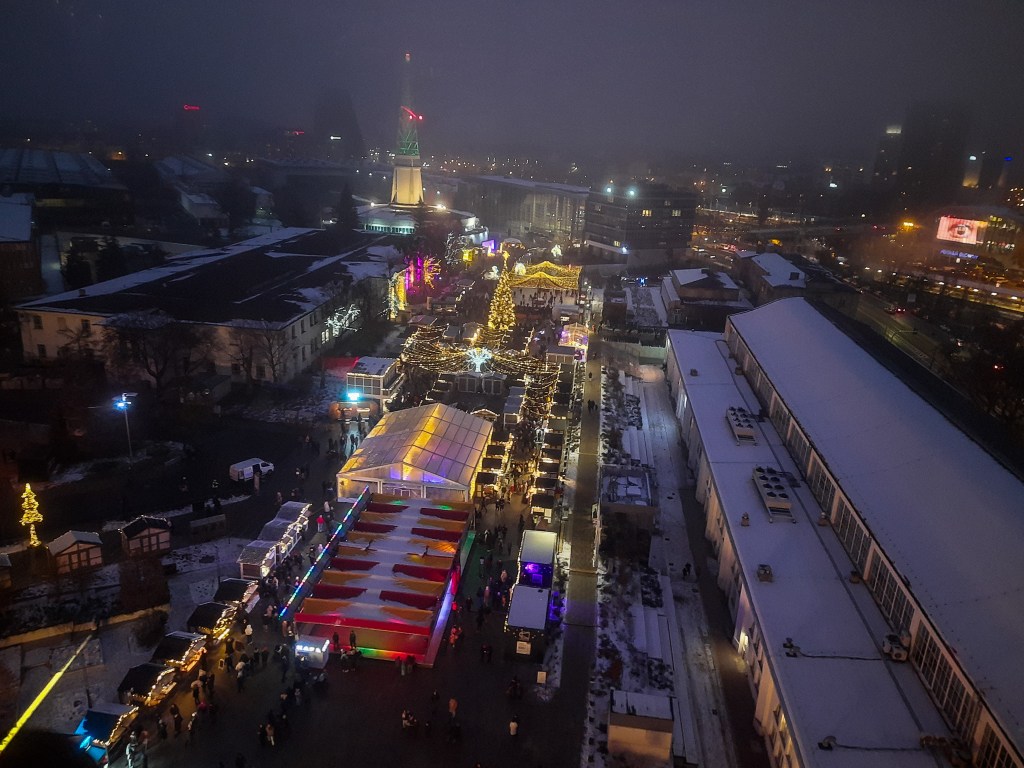 - Na Alexanderplatz – kolejny market w sercu miasta, charakteryzujący się ogromną, podświetloną piramidą świąteczną, będącą największą tego typu konstrukcją w Europie. Wśród popularnych smakołyków można znaleźć currywurst, gorące podpłomyki, pierniki (Lebkuchen), marcepanowe figurki, smażone pączki Berliner Pfannkuchen, karmelizowane migdały i oczywiście grzane wino (Glühwein). Chcący zaznać trochę sportu mogą skorzystać z lodowiska czy curlingowego toru, a preferujący artystyczne doznania podziwiać występy na żywo. W moim odczuciu ten jarmark bardzo dobrze łączy tradycję z nowoczesnością.