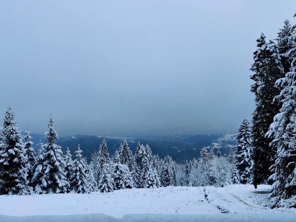 Przy dobrej widoczności ze szczytów Gorców można podziwiać panoramę Tatr.