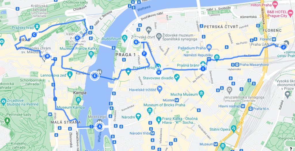 - Wyspa Kampa – urokliwa wyspa na Wełtawie z malowniczymi uliczkami i parkami. Niepłatne.