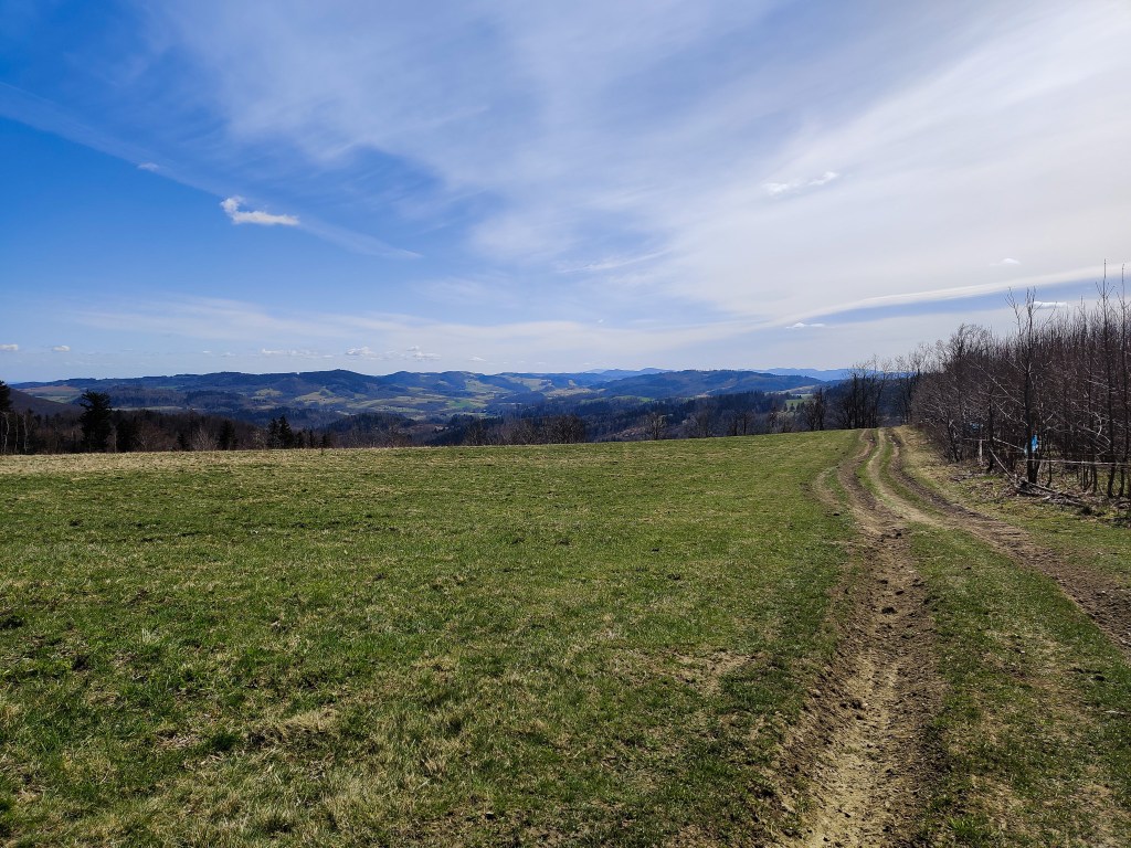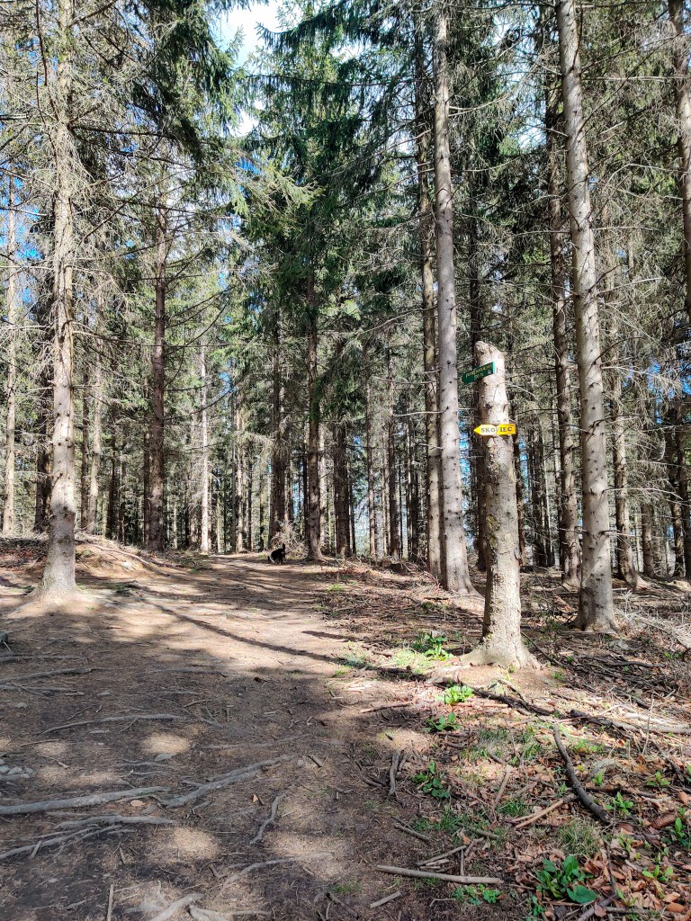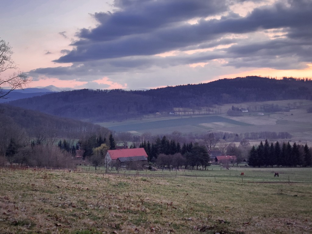 Najwyższy szczyt po lewej to ŚnieżkaDom na PodzamczuOdrestaurowywany zamek Płonina wieczoremKaczorów – początek (i koniec) wędrówki(Niestety) znaczna część naszej trasy przebiegała wśród zabudowań, po asfalcie.Widok na Radomierz i nie tylko 😉KarkonoszeAle, żeby nie było, proponowana droga na szczyt każe prowadzi przez miejsca, w których można się wyciszyć, „zamknąć oczy”.Baranice – szczyt tuż obok Skopca (przez chwilę wydawało mi się, że najwyższy, bo według strony mapy.com (dawniej mapy.cz) Skopiec ma 719 m n.p.m.)Zamiast podążać za oznaczeniami niebieskiego szlaku, może troszkę skrócić sobie drogę idąc tą ścieżką (ze szczytu Baraniec, będzie to ścieżka na wprost, ze szlaku – w lewo).Ciężko ominąć skręt na szczyt, gdy zauważy się oznaczenie 🙂Zdobyte 💪Trasa od strony WojcieszowaWojcieszówNa szczęście odcinek pomiędzy Wojcieszowem a Kaczorowem nie prowadził przy głównej drodze. Za to leśny jego fragment wymagał od nas kilku skłonów czy podniesienia nogi trochę wyżej by przejść przez leżące na ścieżce powalone pnie.Tory też trzeba było przejść, ale to już był pikuś w porównaniu z niektórymi pniami 🙂„Czyjeś pole?” – „Hmmm.. ale tędy prowadzi szlak” – „No to idziemy!”Po raz kolejny sprawdziło mi się, że nie warto w pełni wierzyć prognozą pogody, ale warto być przygotowanym na różne jej warianty, od -5oC do +20oC, od opadów po piękne słońce. Nam udaje się (czasem) wywołać ładną pogodę, a góry zaskoczyć nią nas. Tym razem warunki do wędrówki były super (szczególnie jeśli porównamy je z prognozami), chociaż zdarzył się też fragment z błotkiem.Pałac z 1561 r. w Kaczorowie – obecnie Szkoła Podstawowa, przy której biegnie końcowy (początkowy) fragment trasy.