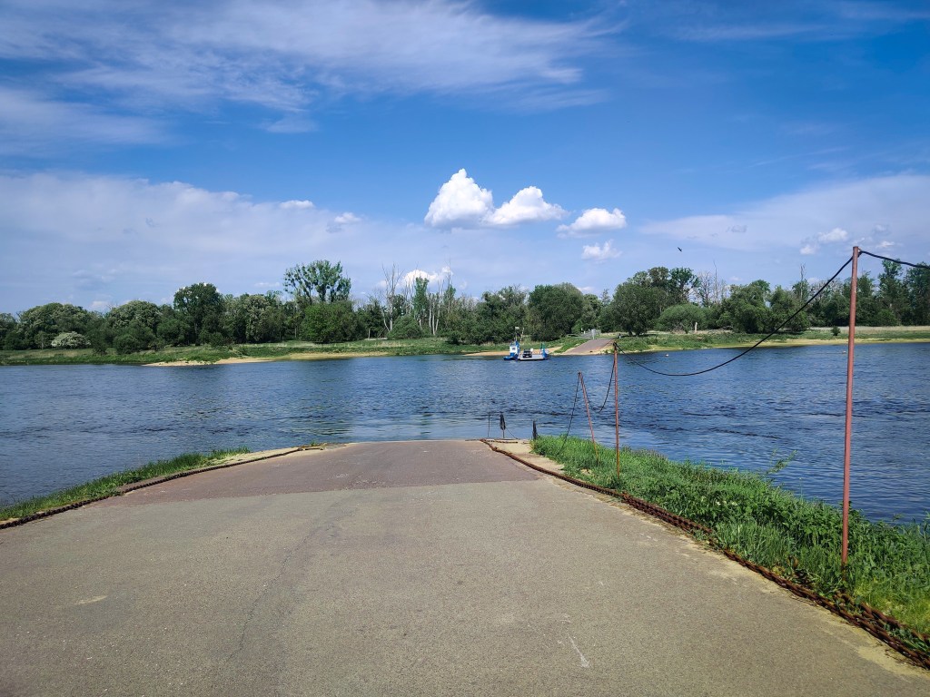 Podczas jednej z przerw na wymianę dętki, odpoczywaliśmy na ławeczce, ciesząc się chwilą bez siodełka pod sobą :D. Mosty w tej części Łaby są oddalone od siebie nawet o kilka kilometrów, dlatego co jakiś czas po rzece kursują promy dla pieszych i rowerzystów. Przy jednym z nich zatrzymaliśmy się na pyszne lody – idealna okazja na regenerację i chwilę relaksu.