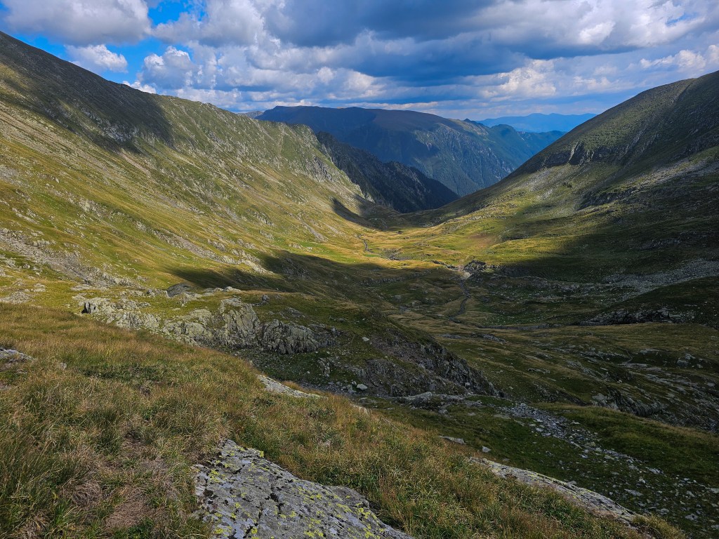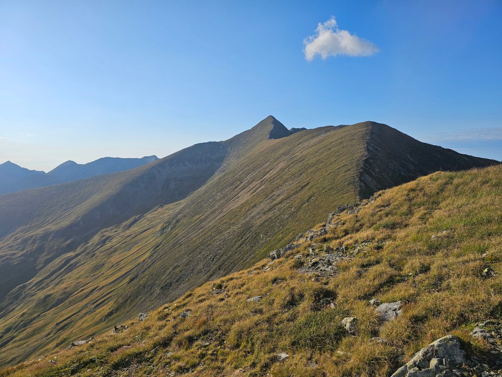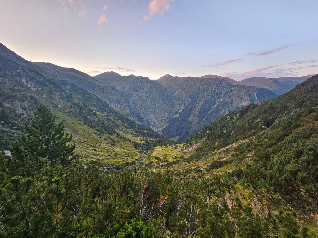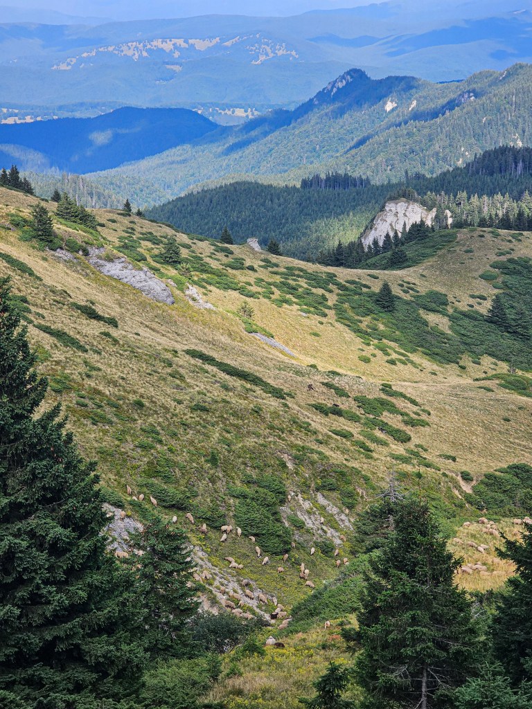 Powrót nie był „prosto w dół” — zeszliśmy trochę niżej, żeby zdobyć jeszcze Gâlbeni (ok. 2 419 m n.p.m.), a dopiero potem zaczęliśmy schodzić w kierunku samochodów. Na pewnym etapie trasa prowadziła niemal pionowo w dół, przez fragment lasu — część z nas schodziła już w ciemności z latarkami. Dlatego raz jeszcze: startujcie jak najwcześniej.