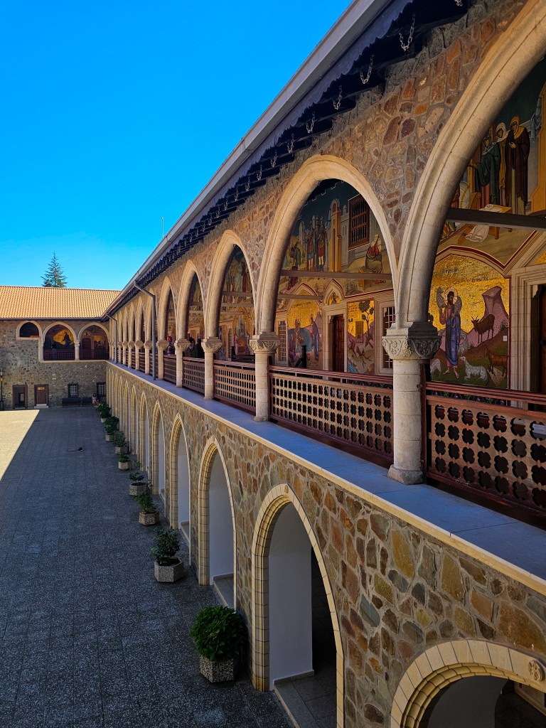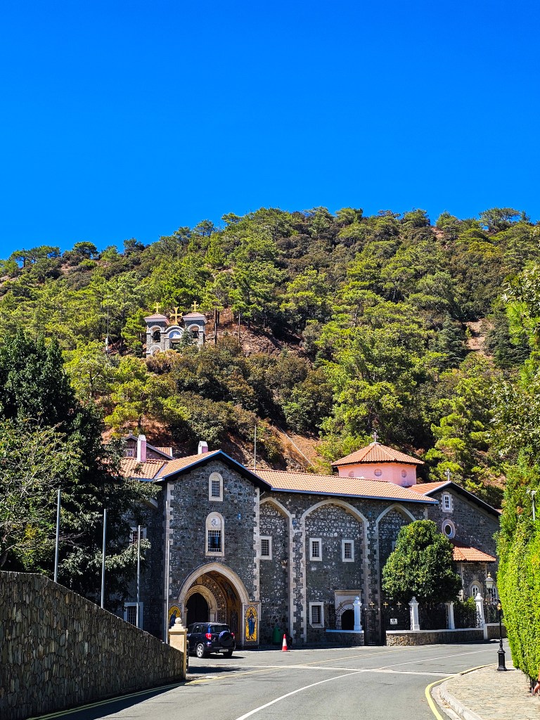 Nieco dalej, na górze Throni, znajduje się klasztor Kykkos – największy i najbogatszy na Cyprze. Przechowuje cudowną ikonę Matki Bożej, która według legendy została napisana przez św. Łukasza Ewangelistę. Mnisi, oprócz modlitwy, produkują tu wino, zivanię, biżuterię sakralną i ręcznie piszą ikony, które można kupić w klasztornym sklepiku.