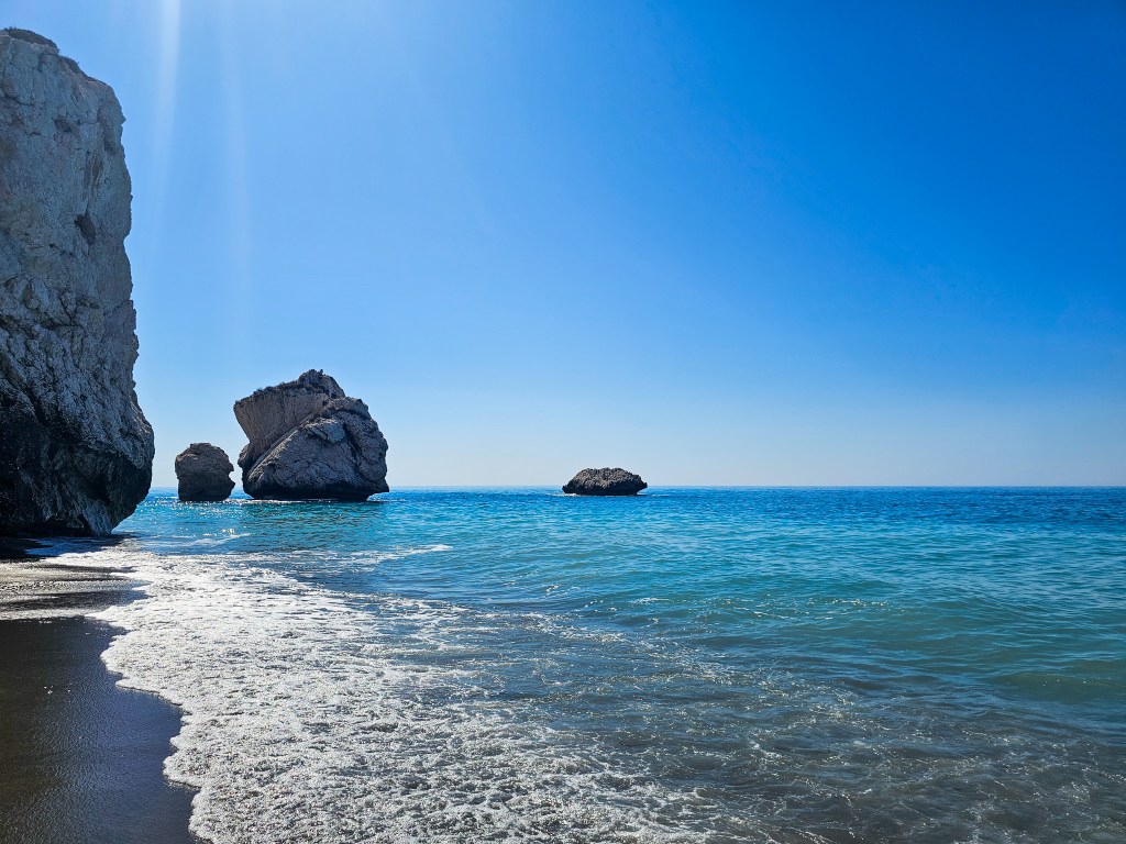 Petra tou Romiou – Skała Afrodyty – wynurza się z fal Morza Śródziemnego kilkadziesiąt kilometrów na wschód od Pafos. W pobliżu znajduje się też grota, w której, jak głosi legenda, Afrodyta miała zażywać odświeżających kąpieli. Dziś jej imieniem nazwano wiele miejsc – od hoteli i restauracji po łodzie turystyczne.
