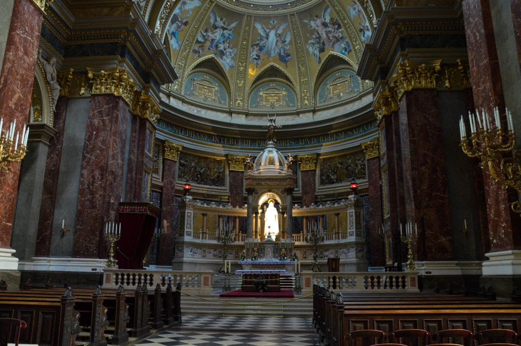 Bazylika św. Stefana zachwyca już z poziomu ulicy — a właściwie deptaku, który do niej prowadzi — chociaż początkowo nie widać jej jeszcze w całości. W największym kościele Węgier znajduje się relikwia — prawica św. Stefana, pierwszego króla Węgier. Jej budowa trwała w latach 1851–1905 i charakteryzuje się monumentalną kopułą oraz klasycystyczną fasadą z zewnątrz. Natomiast wnętrze świątyni pełne jest złotych detali, precyzyjnych fresków i majestatycznych kolumn, a kolorowe witraże w słoneczne dni dostarczają niezwykłych świetlnych pokazów.